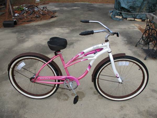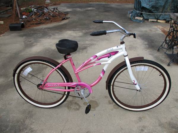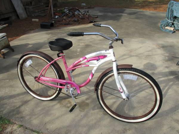 This 26 inch Lady's Bicycle is a coaster brake style- You may not want to pass it up, because, they are very hard to find, not many are for sale- They are designed in the U.S.A. I just installed a brand new quality chain on it-- Even the style of the handlebar and hand grips are well designed- Selling as is show contact info