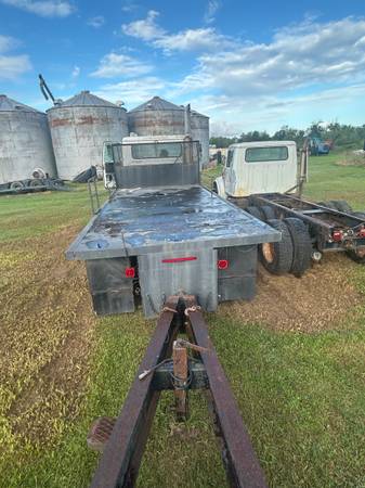 Runs and drives has a wet kit but no hoist. It is NOT a dump bed. 17’ flatbed. With L10 Cummins motor. Title in hand