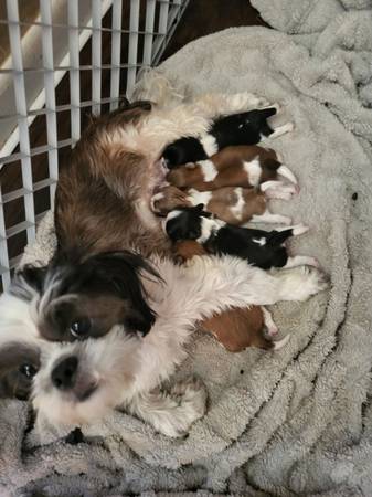 1 male 4 females shihtzu puppies. Will be ready 1st week of December. Taking deposits now. Black and white mom and brown and white is dad. Eight hundred...text