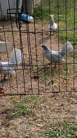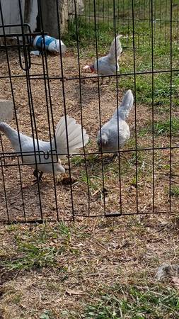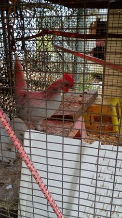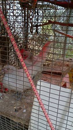 3 months old roo and hen I did have 2 hens but recently lost one due to left unsupervised and a bigger kennel but currently have a pair in the pic ufd fee applies prefer text