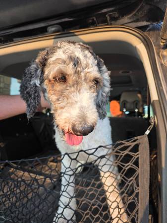 We are rehoming our merle male registered poodle. We had a change in career and simply cannot give him the attention he desires. He's very sweet good with kids, and he lives(yes you read that right) to give hugs. He is still intact and house trained. He's also good with all kinds of animals including chickens. Small rehoming fee does apply.