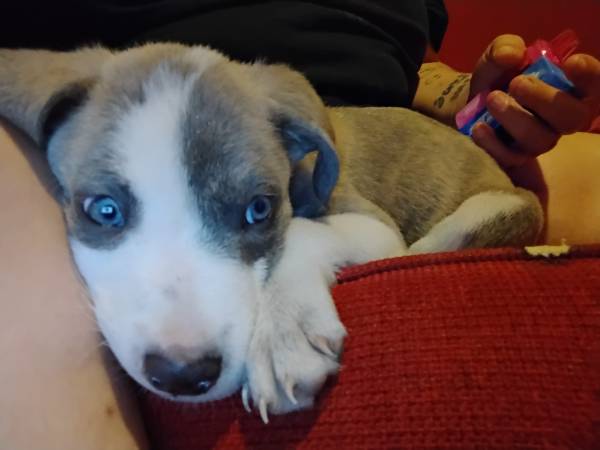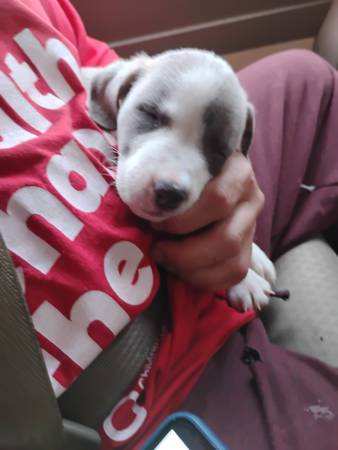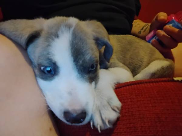 Male pitbull cane corso mix 10 weeks old. He comes with a almost full bag of puppy food, food and water bowls, his blanket, treats, and a few toys. He is a good boy. He is puppy pad trained and almost house trained if a puppy pad isn't down he will whine until he can go outside. He sleeps in the bed with his human. He is great with kids and other animals.