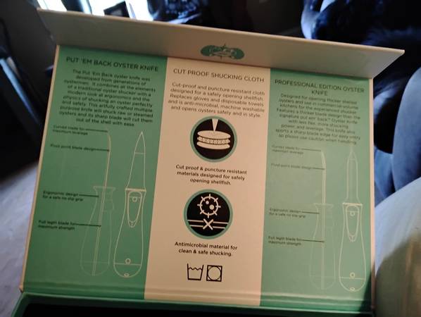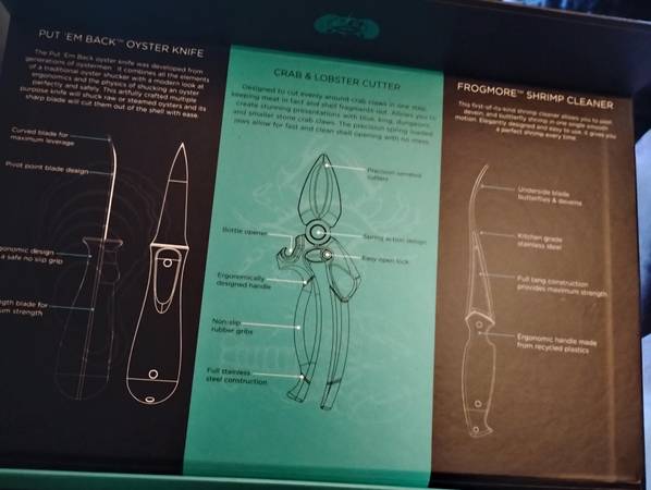 Brand New oyster shucking and shellfish utensils by TOADFISH 2 2 SEPERATE COMBOS $90.00 ON ORDERING ASKING $50.00 EACH CASH ONLY ON PICKUP