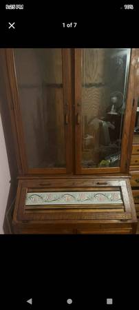 Beautiful gun cabinet solid wood top is glass original key for locks custom pull down section